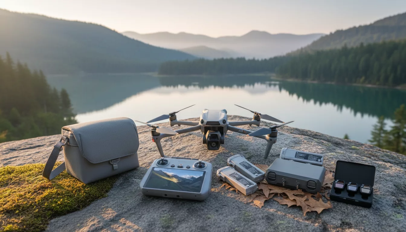 Die mitgelieferte Fernsteuerung mit integriertem Bildschirm macht die Bedienung komfortabler, da ich kein separates Smartphone brauche. Mit drei Akkus sind längere Flugzeiten möglich, was für ausgedehnte Aufnahmesessions praktisch ist. Das enthaltene Zubehör wie ND-Filter und Tragetasche rundet das Paket ab.